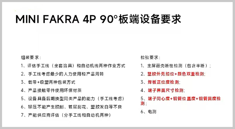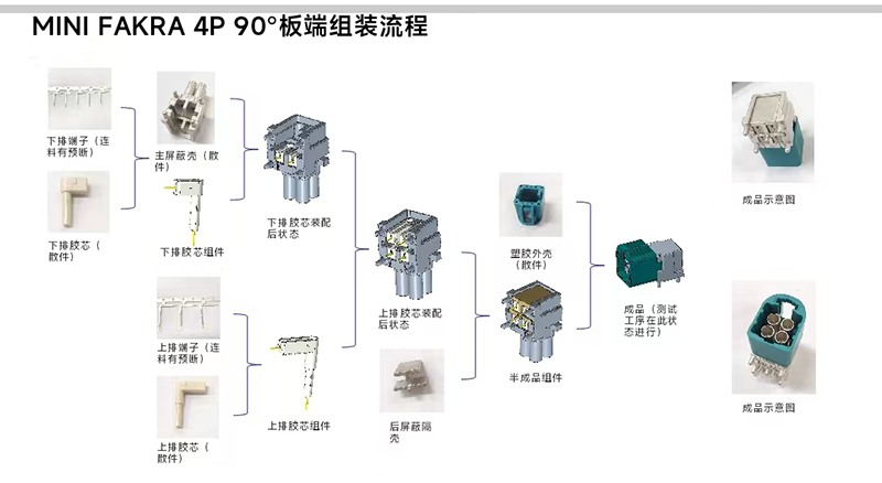 MINI FAKRA 4P 90°板端連接器自動組裝設備生產(chǎn)過程