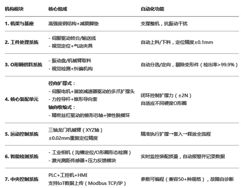提示:建議配合O形圈預(yù)處理設(shè)備(如冷凍收縮柜)使用,可進(jìn)一步降低裝配力30%。設(shè)備需在溫度23±2℃、濕度40-60%RH的潔凈車間運(yùn)行,避免橡膠件老化。此設(shè)計(jì)適用于汽車油封、風(fēng)電法蘭、航天密封環(huán)等大型O形圈裝配場景,投資回報(bào)周期通常≤18個月。