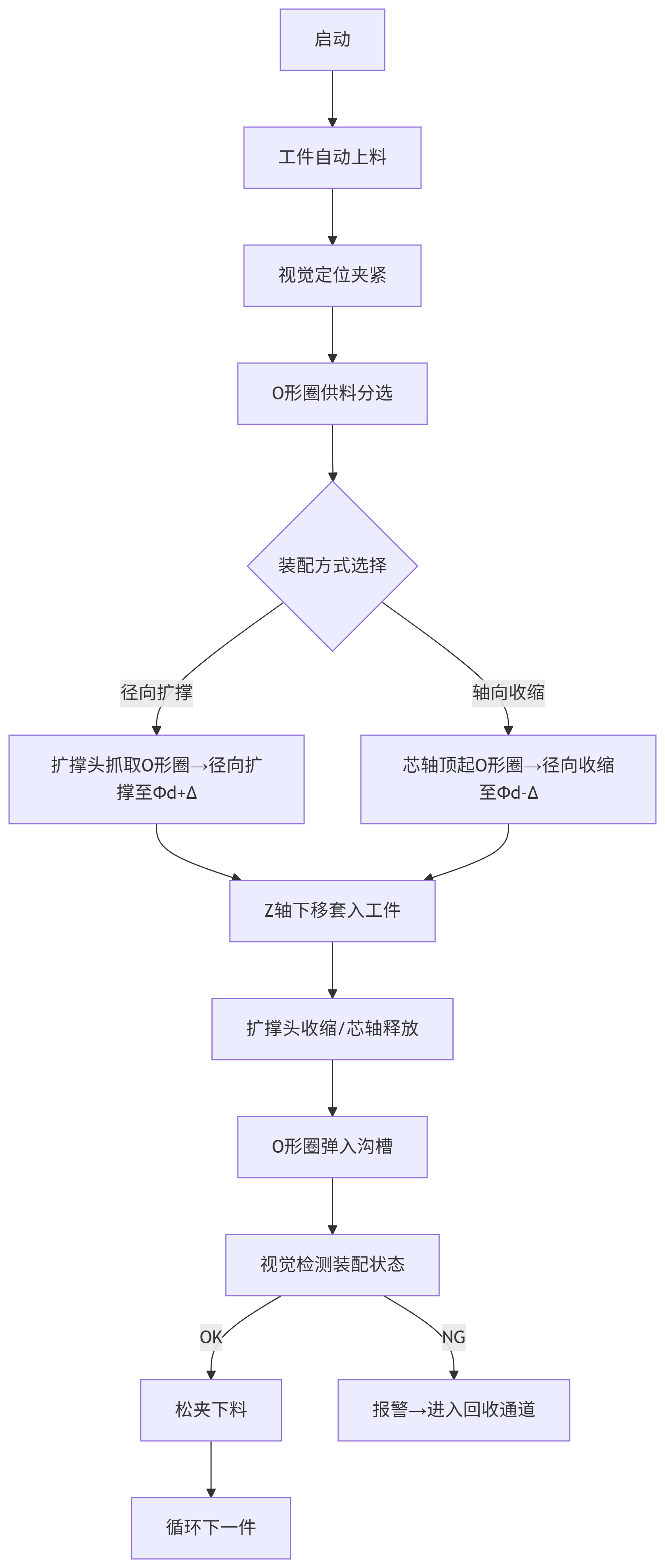 大O形圈自動裝配機(jī),是一種解決人工裝配大型O形圈(直徑>100mm)的痛點(diǎn),實(shí)現(xiàn)高效自動化生產(chǎn)的全自動化裝配機(jī)械設(shè)備。