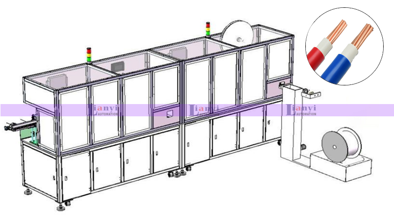 1、線束自動輸入:將需要加工的線束放置在設(shè)備輸入口,通過傳送帶、機(jī)械手、輸送裝置等載具將線束送入設(shè)備進(jìn)行處理。