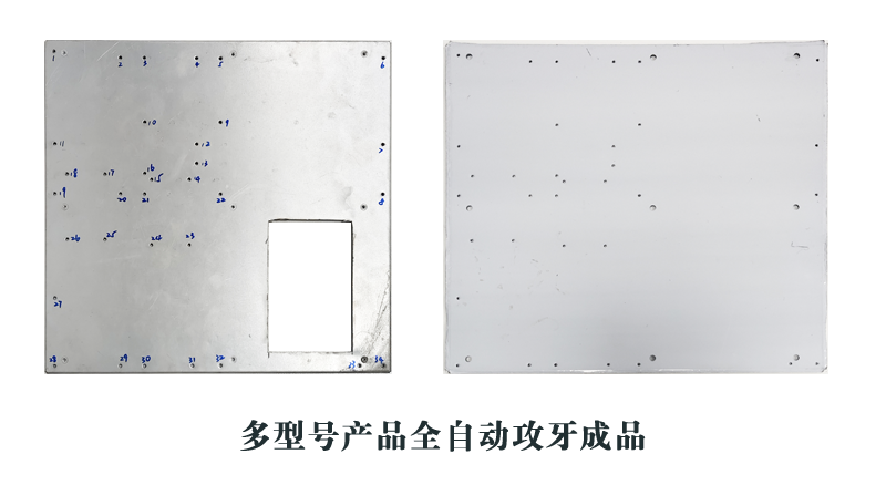 d、完成攻牙后,主軸系統(tǒng)自動(dòng)退出,導(dǎo)軌系統(tǒng)將板材送至下一個(gè)加工位置或退出設(shè)備。